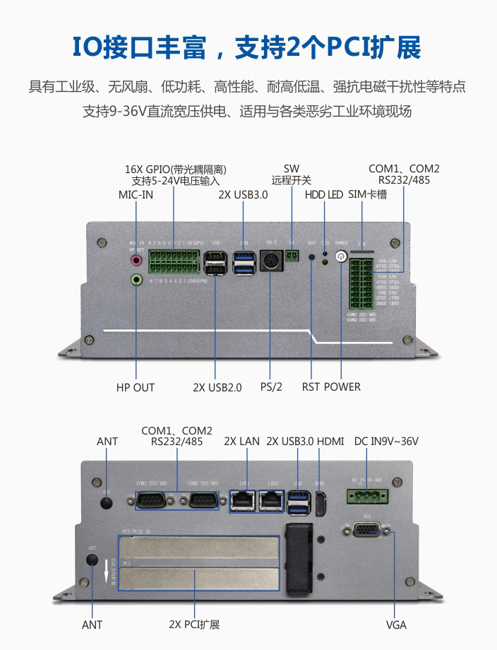 普星工控EBC-3720B产品为高性能宽温宽压工业电脑,内部无线连接,性能稳定可靠。产品基于Intel i3 7100U/i5 7200U/3865U处理器;支持4个串口,2个RS232/485/422,2个RS232/485;支持2个PCI扩展或1个PCIE 4X+1个PCI;支持16路带光耦隔离GPIO,支持一键还原系统功能,可为3D打印机设备提供计算机硬件解决方案。