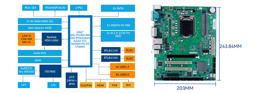 在数据驱动的工业4.0的浪潮中,智能制造已成为推动经济发展和工业现代化的新引擎,紧跟时代发展脚步,创新研发推出OTM-F822 Micro ATX工业主板。它搭载Intel第6-9代桌面级处理器,搭配H110芯片组,具有丰富I/O接口和扩展插槽,可满足智能工厂、机器视觉、人工智能、智慧医疗等高性能应用场景需求。