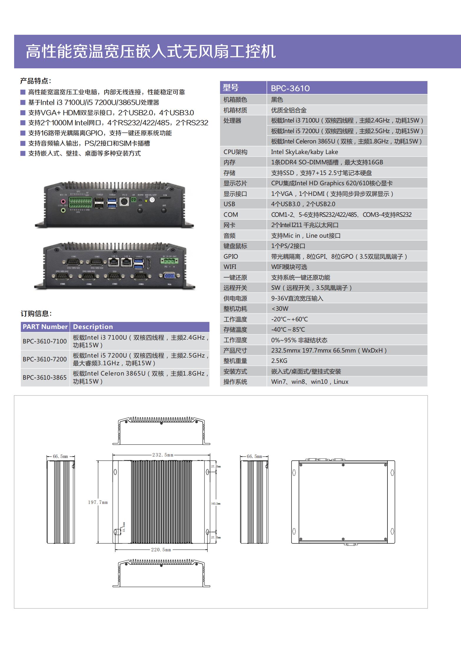 BPC-3610嵌入式工控机