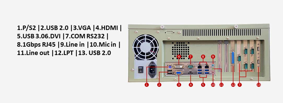 IPC-610H-H110C搭乘Intel H110芯片组,支持双通道DDR4内存,×大可达32G,HDMI+VGA+DVI三显输出,丰富的I/O接口,实用的拓展性,4U标准机架式设计,满足各种工业现场环境。